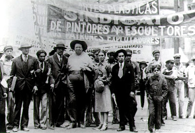 Frida marching for workers rights, at a rally protesting C.I.A. involvement in Guatemala and on a communist rally.